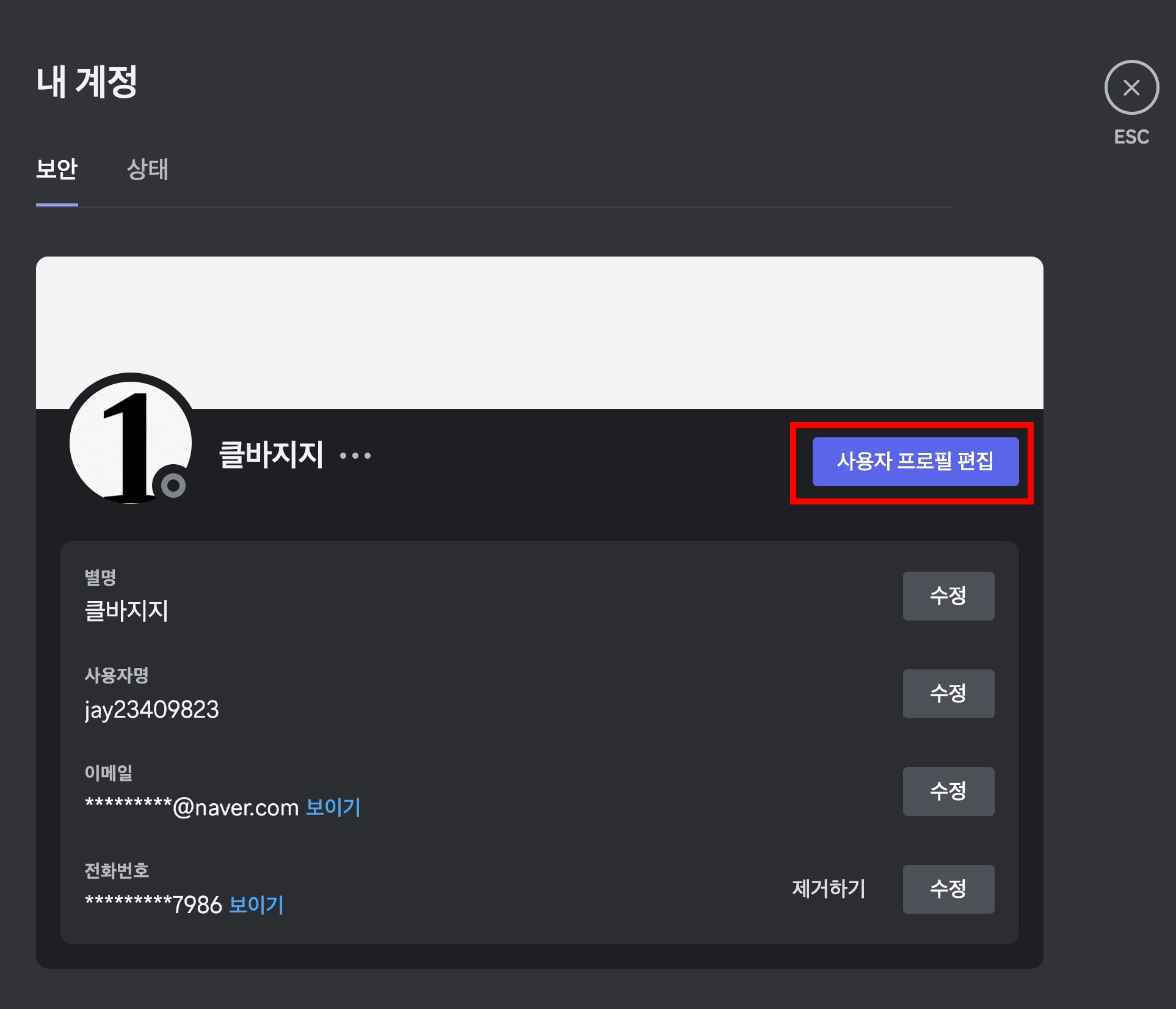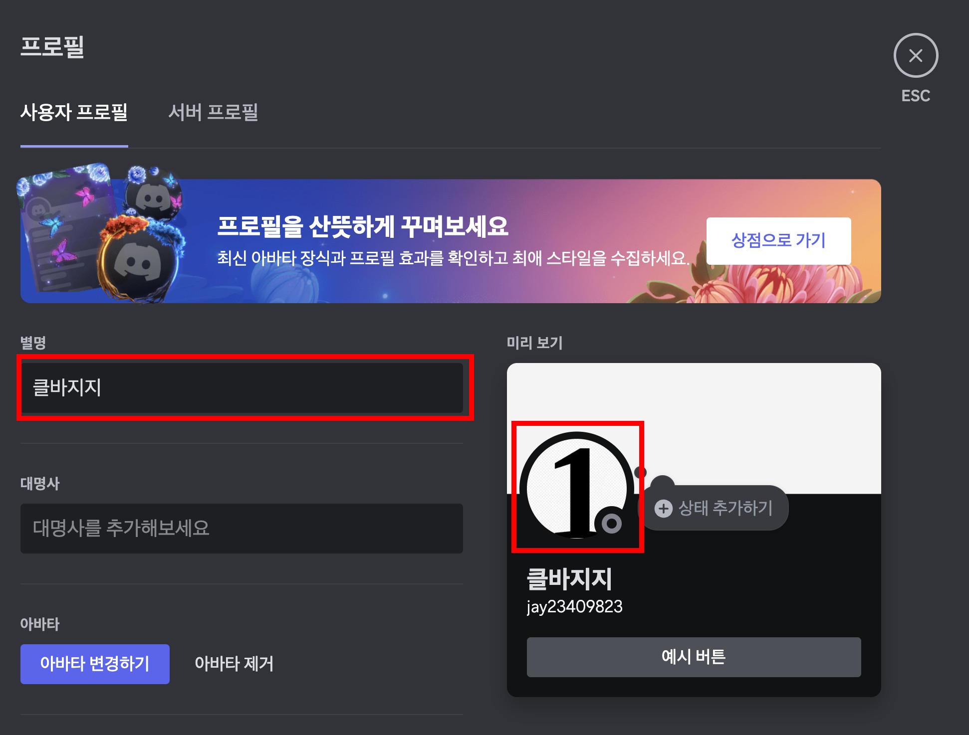 4. 별명, 아바타 클릭해서 수정 후 저장