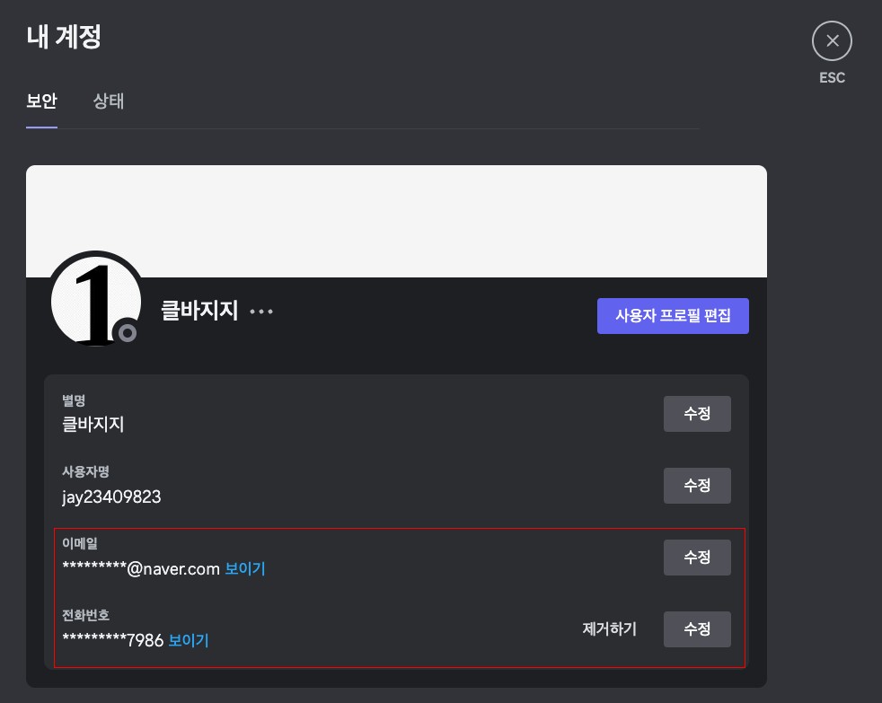 디스코드 프로그램에서 로그인한 계정에 이메일을 인증하고, 브라우저의 디스코드에서는 새로운 계정을 만든 경우입니다